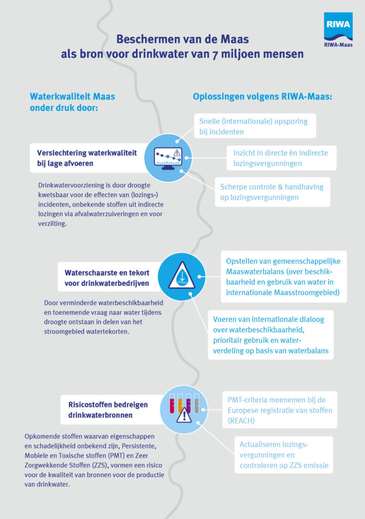 “Hoewel de waterkwaliteit van de Maas de laatste decennia is verbeterd, blijft de Maas als bron voor de drinkwaterproductie kwetsbaar,” zegt Maarten van der Ploeg, directeur van RIWA-Maas. Hij pleit voor scherpe bewaking van de waterkwaliteit. Ook is intensieve internationale samenwerking nodig om meer inzicht te krijgen in het gebruik en de beschikbaarheid van water voor de toekomst. “Door de gemeenschappelijke uitdagingen samen aan te pakken, kunnen we ervoor zorgen dat de Maas voor alle gebruikers ook in de toekomst een waardevolle bron blijft,” aldus Van der Ploeg.
